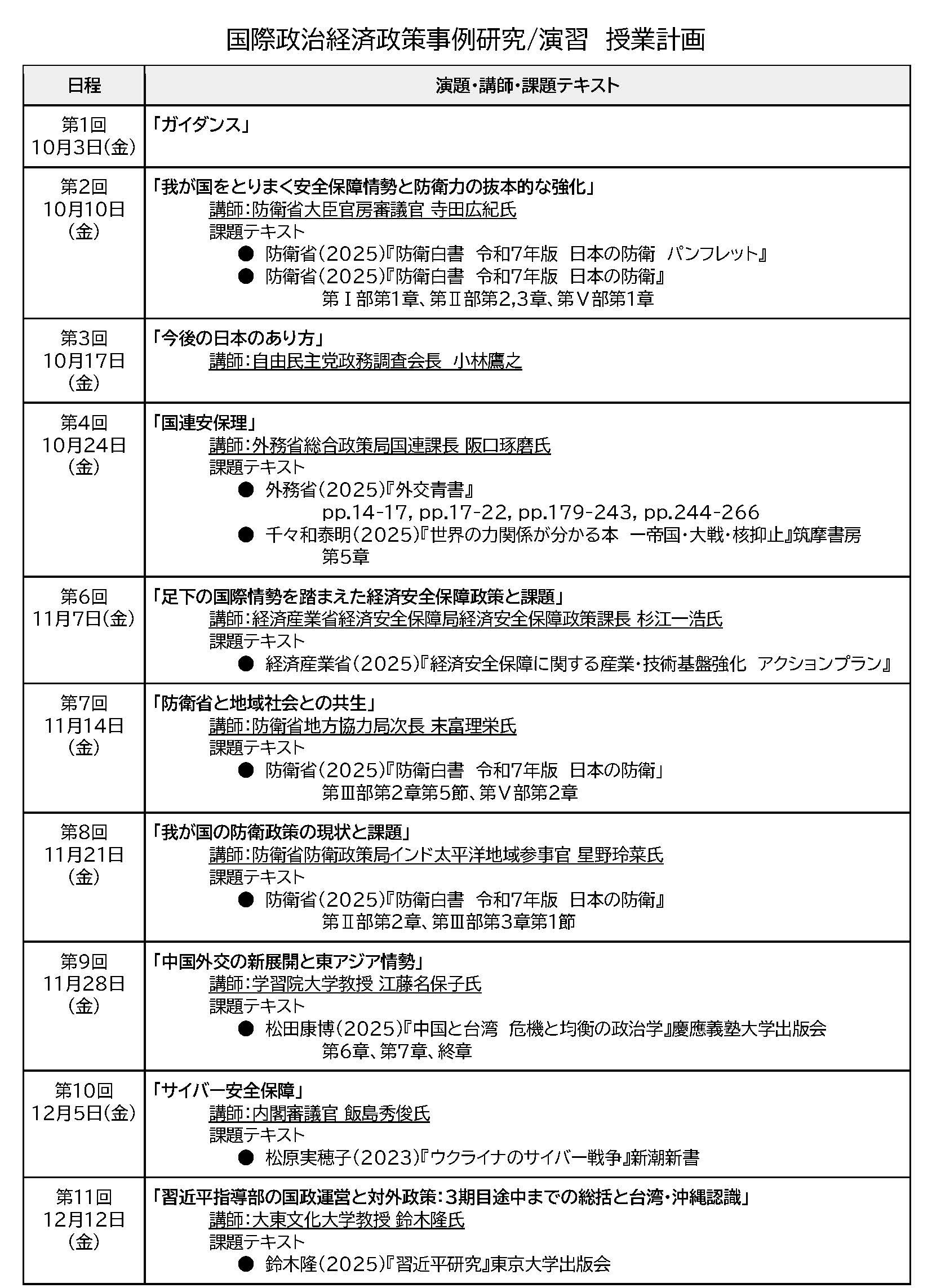 国際政治経済政策事例研究(2025年度 ※隔年開講)